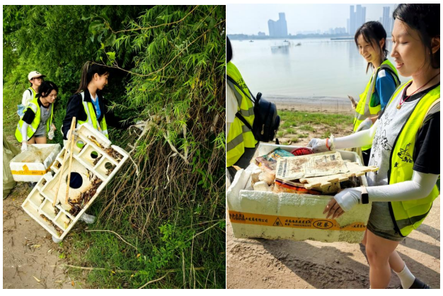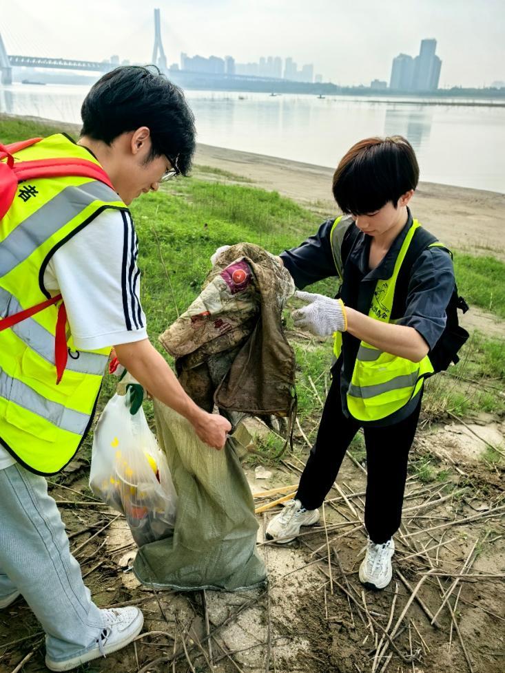 在撿拾垃圾的間歇,同學(xué)們充分感受到“人與自然和諧共生”的美麗畫卷——不遠(yuǎn)處幾只白鷺在江水退去后的灘涂上閑庭信步,三兩只灰頭麥雞也不時加入它們。經(jīng)過一個小時的清理,5只蛇皮袋裝得滿滿,被運往天興洲鄉(xiāng)政府指定的垃圾集中處理點。