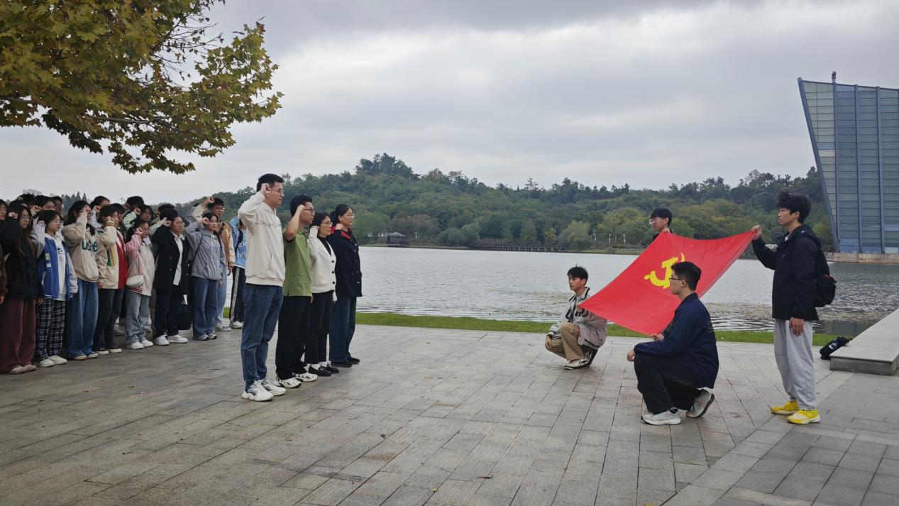 2023級輔導(dǎo)員沈易軍老師帶領(lǐng)支部全體同學(xué)在黨旗下重溫入黨誓詞,追憶入黨初心,牢記使命擔(dān)當(dāng)。