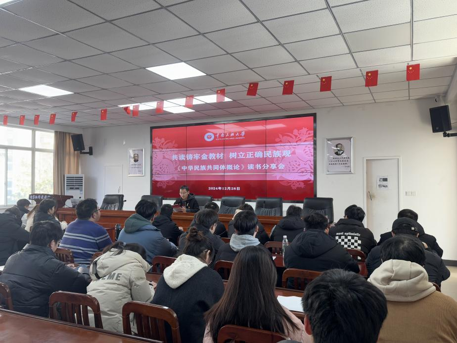 為深入學習貫徹習近平總書記關于加強和改進民族工作的重要思想,進一步鑄牢中華民族共同體意識,推動《中華民族共同體概論》學習走深走實,12月28日,計算機科學學院2024級研究生黨支部在9-211教室舉辦“共讀鑄牢金教材,樹立正確民族觀”讀書分享會。學院2024級全體研究生黨員、發展對象、入黨積極分子參加此次活動,分享會由研究生兼職輔導員施華斌主持。