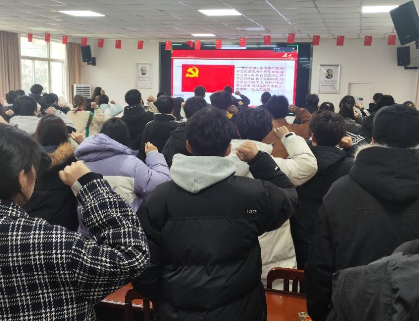 黨支部書記蘇志俊引領(lǐng)全體成員共同回顧并莊嚴(yán)宣誓入黨誓詞,每一句誓言都擲地有聲,激蕩著每一位同志的心靈深處,激發(fā)起同學(xué)們內(nèi)心澎湃的激情與堅(jiān)定的信念,時(shí)刻銘記入黨時(shí)的初心與使命。