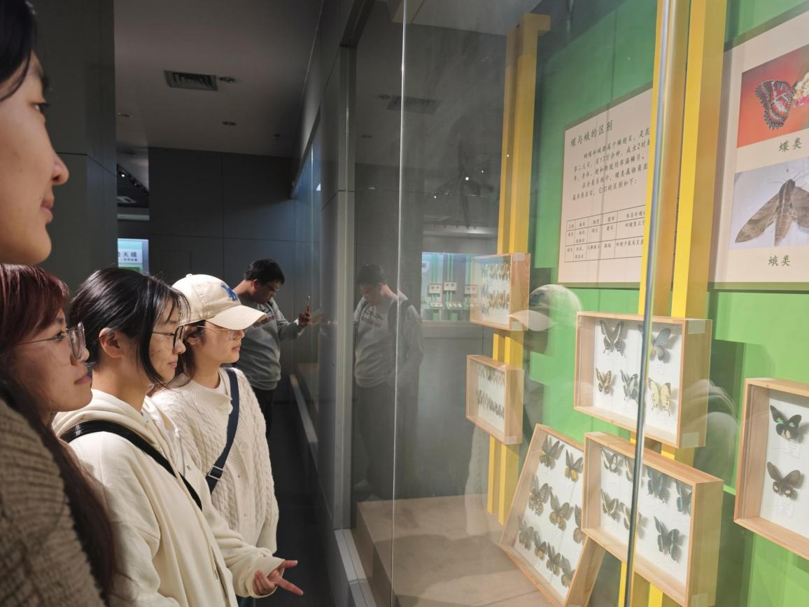 博物館藏品豐富,系統保藏和展示了各類動植物標本資源近30萬份。在講解員的帶領下,同志們走進“自然藏珍 文明饋贈”,依次參觀了序廳、蟄鳴蛺趣(昆蟲)、野性自然(野生動物)、溫馴家園(畜牧獸醫)、本草芳華(植物)、大地寶藏(土壤地礦)六大主題展廳,真切感受到自然演變之恢弘、生命科學之魅力、生物進化歷史之悠久,進一步加深了對習近平總書記關于生態文明建設重要論述的領悟。