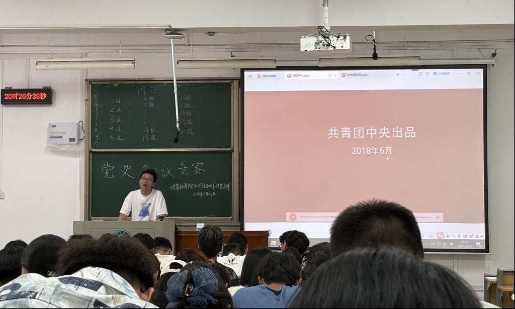 為深入學(xué)習(xí)貫徹黨的二十大精神,推動(dòng)黨史學(xué)習(xí)教育常態(tài)化長效化,落實(shí)計(jì)算機(jī)學(xué)院黨委“鑄魂育人、數(shù)智強(qiáng)國”黨建工作品牌建設(shè),引導(dǎo)廣大學(xué)生從黨的百年奮斗歷程中汲取智慧和力量,5月28日,計(jì)算機(jī)學(xué)院(人工智能學(xué)院)2023級(jí)本科生黨支部在15棟119教室舉辦“學(xué)黨史,強(qiáng)信念,鑄黨魂”黨史知識(shí)競(jìng)賽,來自2023級(jí)、2024級(jí)的20支參賽隊(duì)伍共計(jì)120余名同學(xué)齊聚一堂,通過以賽促學(xué)、以學(xué)促踐,共同感悟黨在不同歷史時(shí)期的偉大抉擇和艱辛探索。活動(dòng)由吳潤、陳雪同學(xué)主持,2023級(jí)本科生黨支部書記蘇志俊參加。