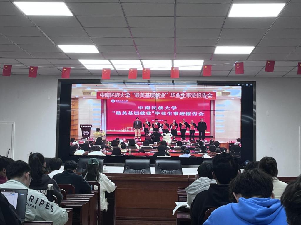 為推進學(xué)生在基層服務(wù)就業(yè),發(fā)揮先鋒榜樣引領(lǐng)作用,3月31日晚上18:30--20:30,計算機科學(xué)學(xué)院于9號樓211會議室組織觀看了中南民族大學(xué)“最美基層就業(yè)”畢業(yè)生事跡報告會。