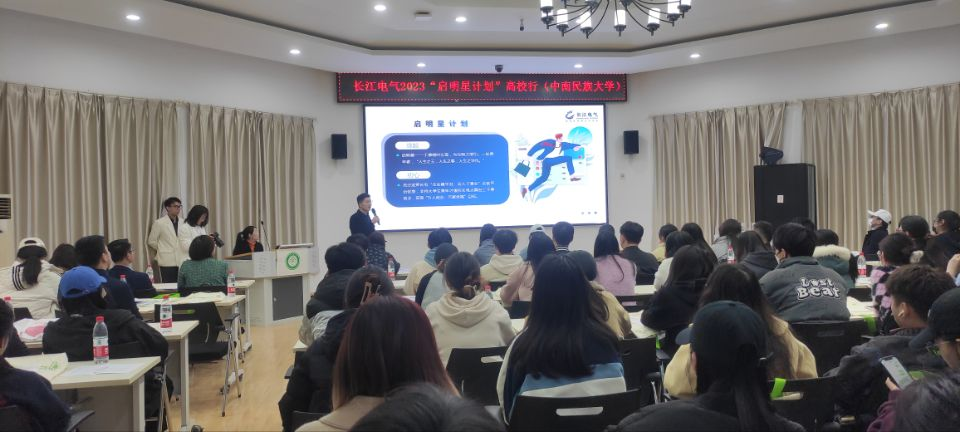 長江電氣集團股份有限公司的相關領導親自蒞臨我校,通過PPT展示詳細介紹了公司概況、企業文化內涵、“啟明星計劃”招聘要求、招聘崗位、薪資待遇、職業發展等,幫助同學們更加全面地了解“啟明星計劃”活動。