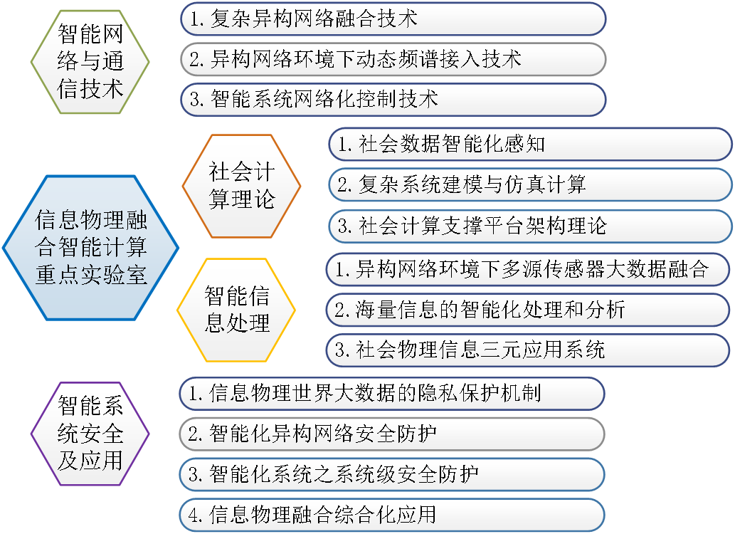 信息物理融合智能計算重點實驗室以中南民族大學計算機科學學院和智慧城鄉研究院為依托,以武陵山片區為主要應用領域,針對該區域的農業、制造業、服務業等關鍵領域展開深入研究與實踐。我們充分發揮計算機科學與技術、自動化、網絡工程、人工智能等多學科交叉發展的獨特優勢,以智能算法和計算理論研究為核心驅動力,依托社會物理信息三元應用系統平臺,致力于取得具有原創性的科研成果。根據國家中長期科技發展的戰略需求及CPS學科的全球發展趨勢,結合實驗室現有平臺的優勢、特色及國內外CPS發展的現狀,我們精心規劃了四大核心研究方向,以引領未來科技發展的潮流。