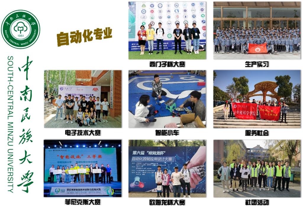 自動化專業分別于2020年、2021年獲批 “湖北省一流本科專業”、“國家一流本科專業”建設點。目前在校本科生規模510余人,累計畢業學生 2280人。2021年,依托本專業的控制工程碩士專業招生,目前擁有全日制本科、碩士完整的人才培養體系。自動化專業形成了以學生為中心,“教-學-研-賽”一體化的人才培養特色,曾獲“全國大學生智能汽車競賽”全國總決賽第1名、第2名;“大學生電子設計競賽”全國一等獎、“CIMC西門子杯中國智能制造挑戰賽” 離散行業自動化方向(邏輯算法)全國一等獎;近3年來學生參加國家級14個項目獲得省二等獎及以上獎項137項。2023年自動化專業提交工程教育認證申請并獲得受理,目前處于工程教育認證自評階段。