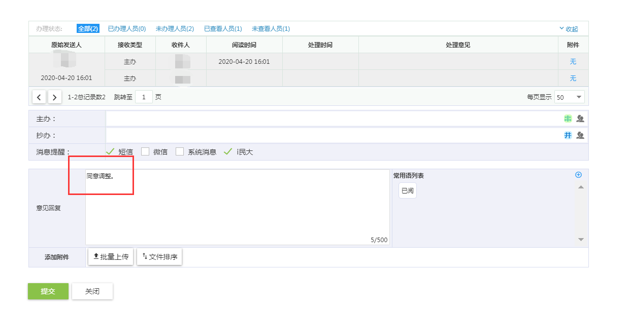 2.教學(xué)院長(zhǎng)審批請(qǐng)給予明確意見(jiàn)回復(fù),如“同意調(diào)整”等。