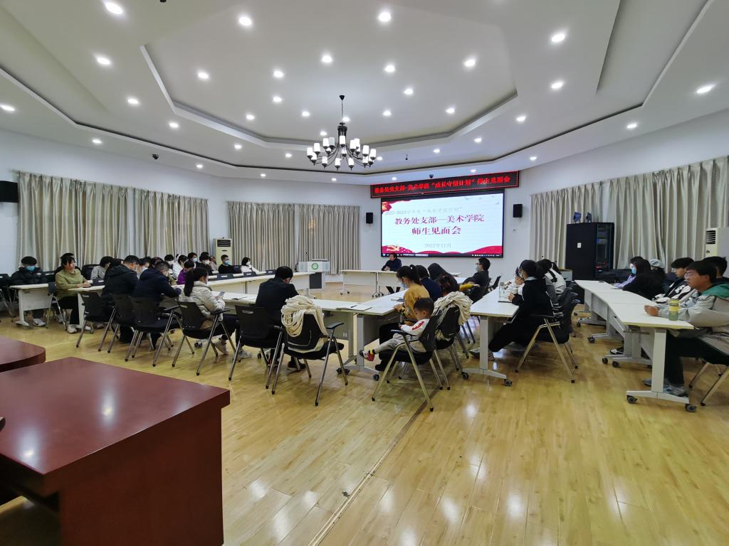 11月17日下午,教務(wù)處黨支部與美術(shù)學(xué)院2022級“成長守望計(jì)劃”師生首次見面溝通交流會在四號樓多功能廳舉行。教務(wù)處(監(jiān)評中心)班子成員、各科室負(fù)責(zé)同志、參與本次“成長守望計(jì)劃”老師及美術(shù)學(xué)院2022級有關(guān)同學(xué)參加了交流會。交流會由教務(wù)處黨支部書記余俊同志主持。