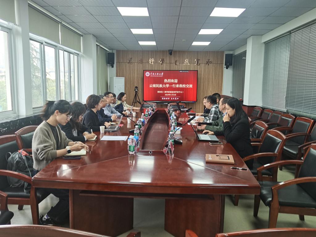 我校教務處處長、教學質量監控評估中心主任胡軍浩全面介紹了學校審核評估組織機構、自評自建、線上和進校考察的組織安排與經驗做法。信息化建設管理處處長張淼介紹了學校教學信息化建設和審核評估技術保障相關工作。教務處副處長耿亮、陳曉希、劉晶分別就審核評估各自負責的具體工作交流經驗。雙方就教學質量監控與評估工作進行了深入探討與交流。趙云合表示,學校的經驗做法對云南民族大學進一步做好審核評估自評自建工作具有重要借鑒價值,希望雙方以此為契機,進一步加強工作溝通與交流。