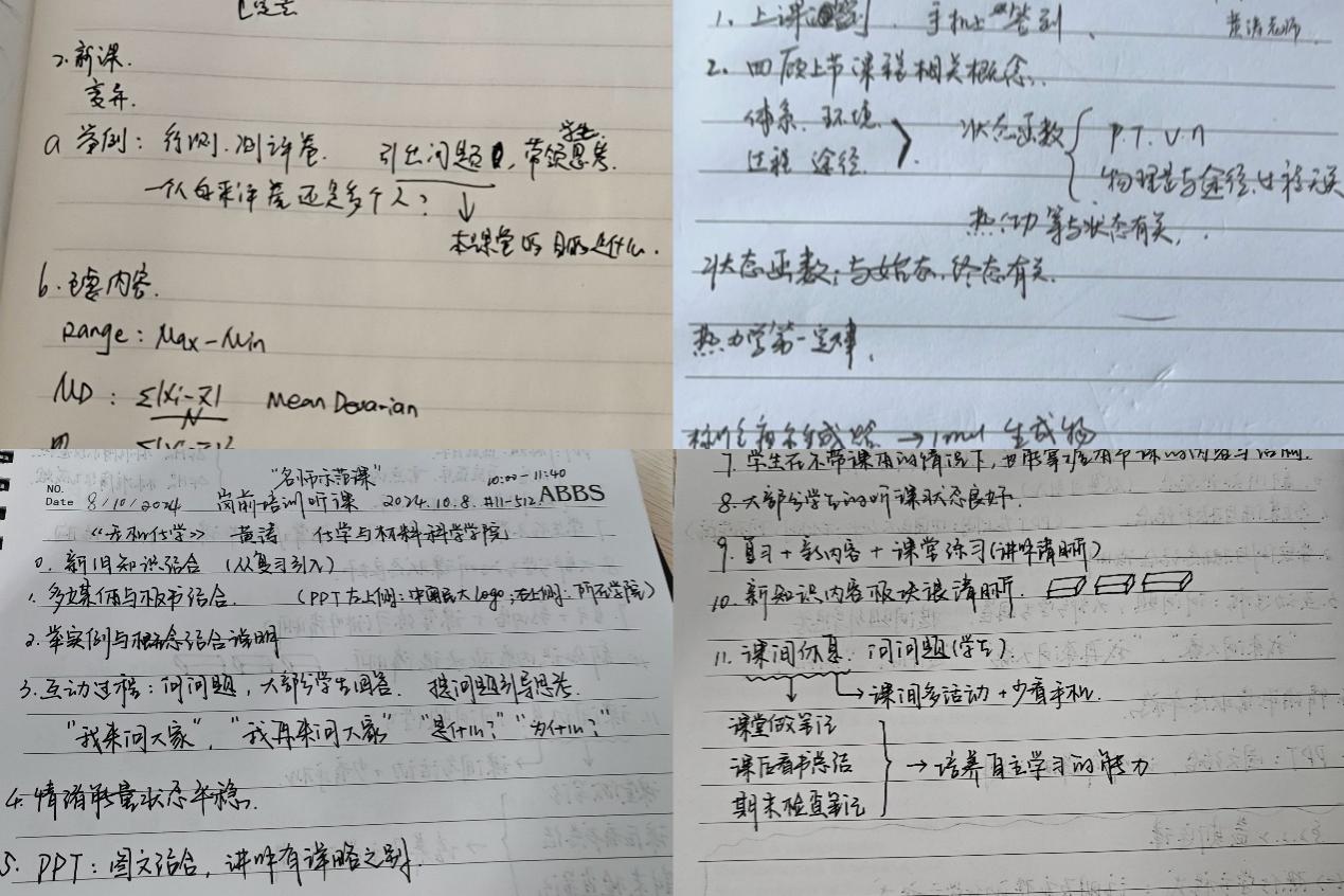 新入職教師觀摩筆記。 黨委教師工作部供圖