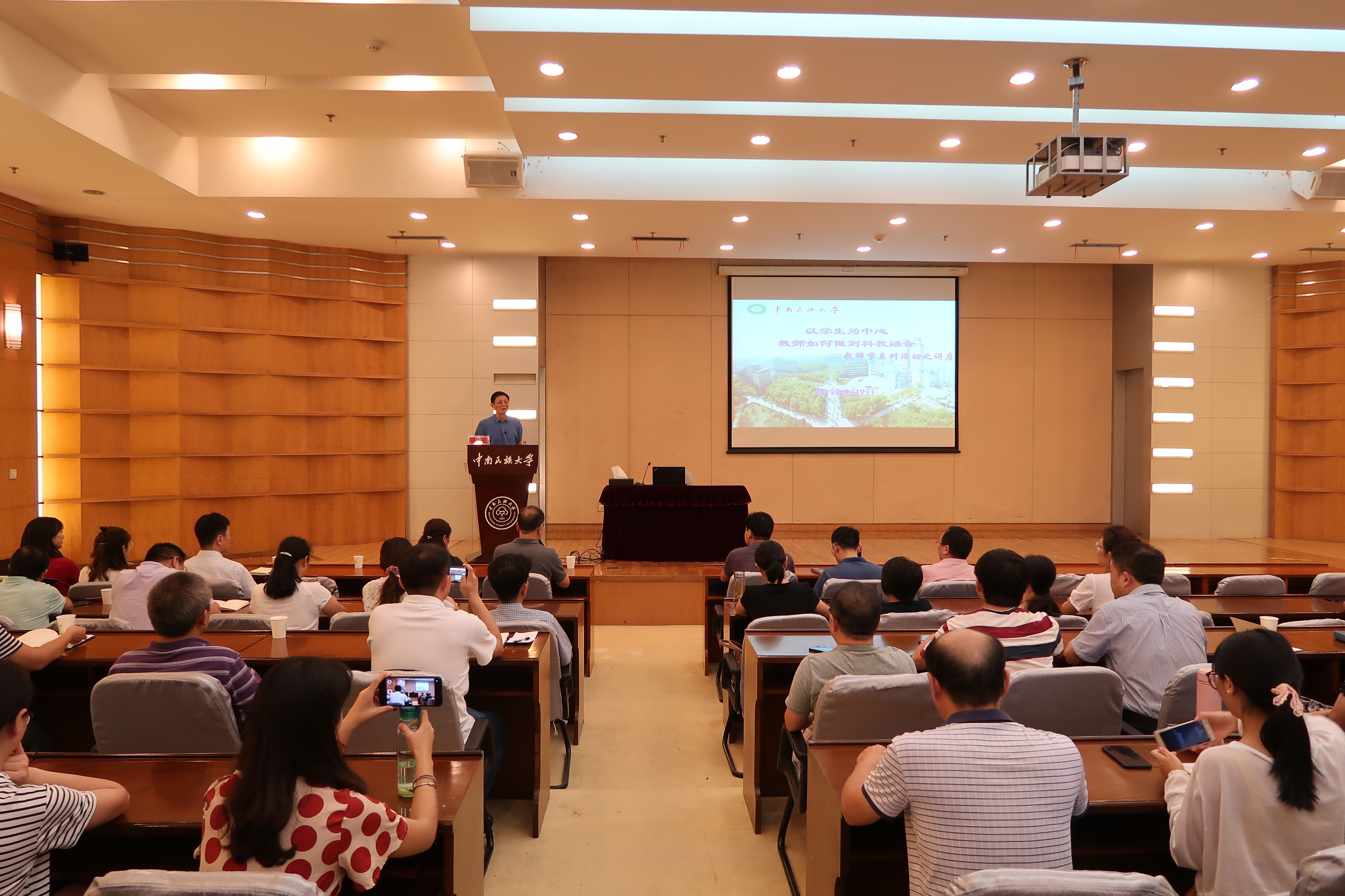 鄭用璉教授做主題報告 9月10日中午,教師教學發展中心繼續舉辦了第72期教學學術午餐會。第三屆 “中南民族大學教學標兵”——計算機科學學院帖軍教授、化學與材料科學學院李琳教授應邀作為主持人,并分享了“科教融合”體驗與經驗。李琳教授巧妙引用“井岡山精神”,從思想、意識、教師素養等方面闡述了自己對科教融合的認識;帖軍教授則以自己帶領學生團隊為例,生動講述了如何在教學中培養學生科研意識,以及如何利用科研成果反輔教學的一系列故事。兩位教授的主持有高度、有深度,深深地吸引了在場的教師們。 在本次午餐會上,校黨委副書記、副校長、教師教學發展中心主任宋發軍教授對全體教師致以節日的問候,肯定了兩位教學標兵在科教融合、人才培養等方面所作出的努力,希望教師們以他們為榜樣,認真領會科教融合的內涵和精髓,用實際行動為學校人才培養、專業和學科建設作出貢獻。