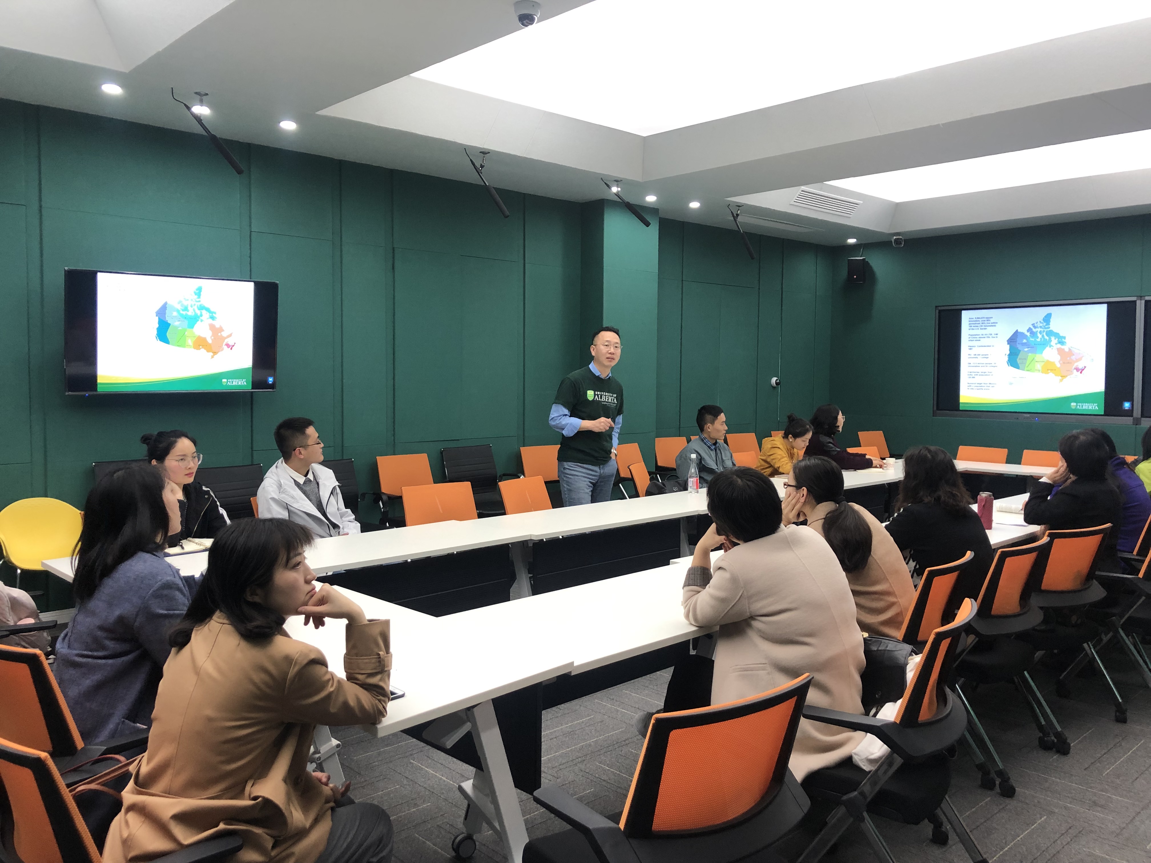 在《Teaching and Learning Culture in North America:A few key areas of differences with China》講座中,柳博士首先從政治、經濟、歷史、地理等方面粗略地介紹了加拿大的一些基本情況,隨后從學生入學選拔方式、專業課程編排、學習成績、學期安排、學生管理與服務等15個方面闡述了北美高校與中國高校之間的區別。最后,他指出,中國與北美的高校各有優劣,我們應當不斷自省,向國外高校先進的管理模式學習,在關注學生成才的同時促進學生的自立與自強。