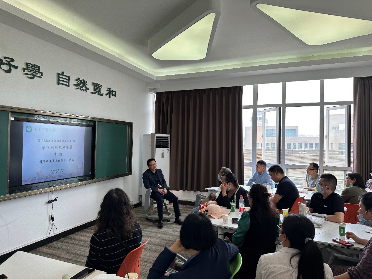 為持續(xù)深化 “三全育人”綜合改革,5月25日,教師教學(xué)發(fā)展中心邀請科學(xué)研究發(fā)展院院長覃瑞教授圍繞“學(xué)生創(chuàng)新能力培養(yǎng)”主題,與學(xué)校近40名教師開展分享交流。