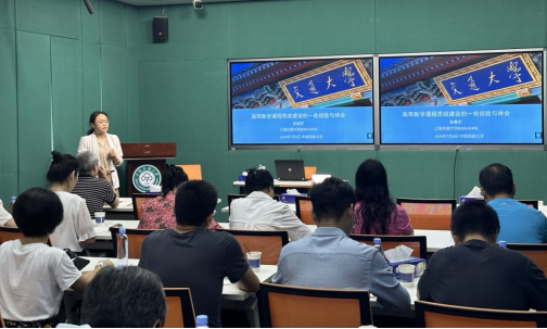 陳春麗副教授曾獲評上海交通大學教書育人獎二等獎、唐立新教學名師獎、卓越教學獎、優秀教師獎一等獎,教育部自然科學一等獎等獎勵。她以《〈高等數學課程思政建設》為題,分析了《高等數學》中辯證統一思想、方法論和學習力提升等方面所蘊含的思政元素,從思政元素的挖掘、思政教學設計等方面闡述了對課程思政建設的研究與實踐。陳老師指出,通過教學模式改革、辯證統一思想融入教學設計,切實解決學生學習中遇到的問題,讓學生可以從方法論和辯證統一的角度去認識高等數學,養成知識探究型學習習慣,培養學生喜歡數學、勤于思考、求真務實的科學精神。