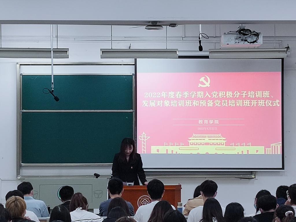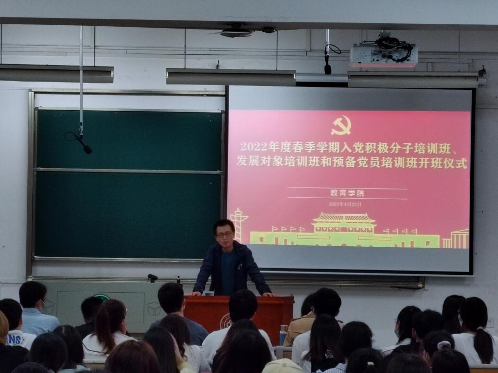 為加強學生黨員思想政治教育,增強理論素養,提高政治覺悟。4月22日晚,教育學院于15棟221舉辦了春季學期黨課培訓班開班儀式。院黨委書記周剛、黨委副書記孫冰出席了本次大會。