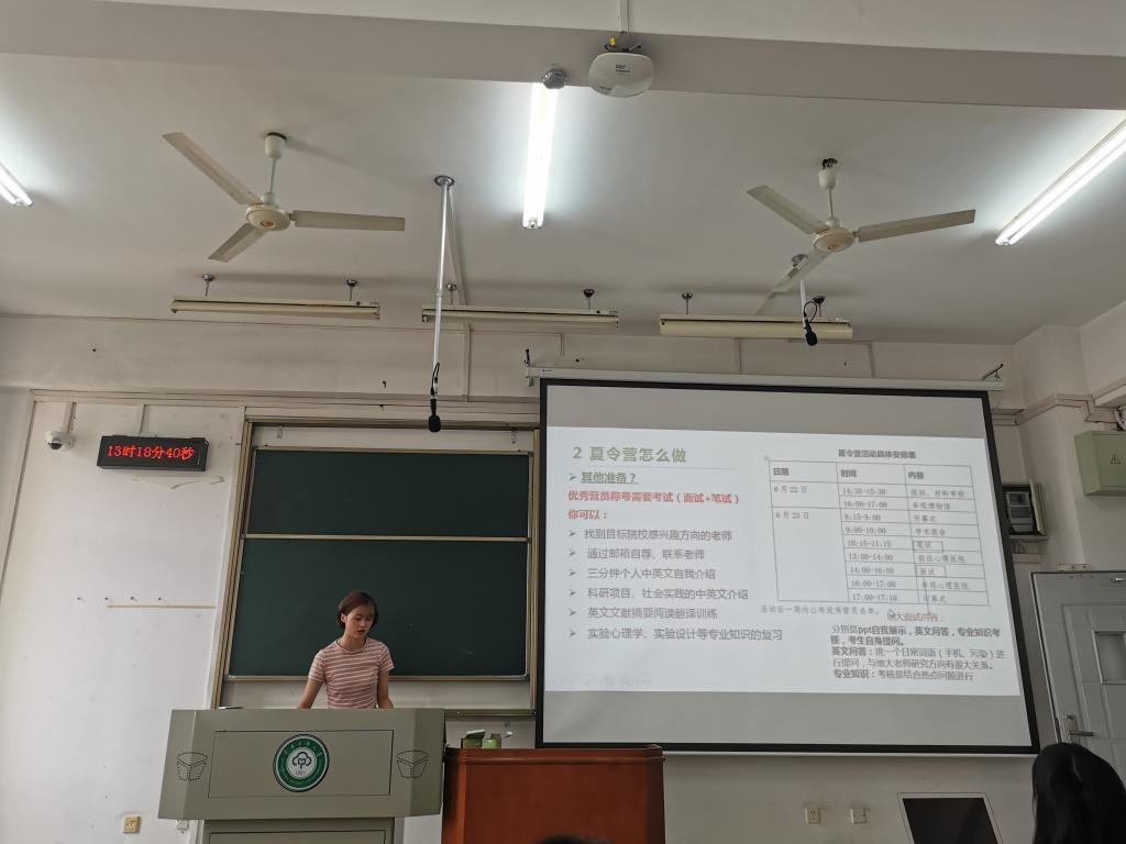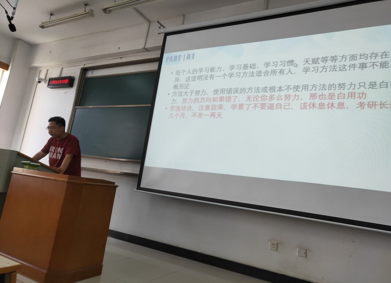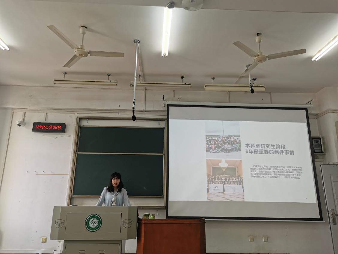 在升學中取得優異成績的2021屆畢業生分享了自己的保研和考研經驗。張欣渝同學(保研至華南師范大學),給大家介紹了申請夏令營與保研的具體要求,分享了自己參與預推免與夏令營的過程;包天一同學(考研至北京師范大學)向大家著重講述了自己備考中如何復習專業課的方法;馬浩同學(跨考至鄭州大學)向有意跨考的同學講述了相關注意事項,強調一定要把初試分數提上去,這樣在復試的時候才不至于被淘汰;張東成同學(調劑至首都醫科大學)則給同學們分享了取得政治和英語高分的經驗——與室友/同學討論相關知識點可以提高政治分數,而多讀本專業英文文獻則能提高英語水平;張雪妍同學(支教西藏山南,在本校讀研)向大家分享了本科階段的成長歷程與參與研支團計劃的經驗。