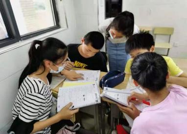 圖 ②(18級卓越小學教師實驗班的同學在耐心地輔導學生做練習題)