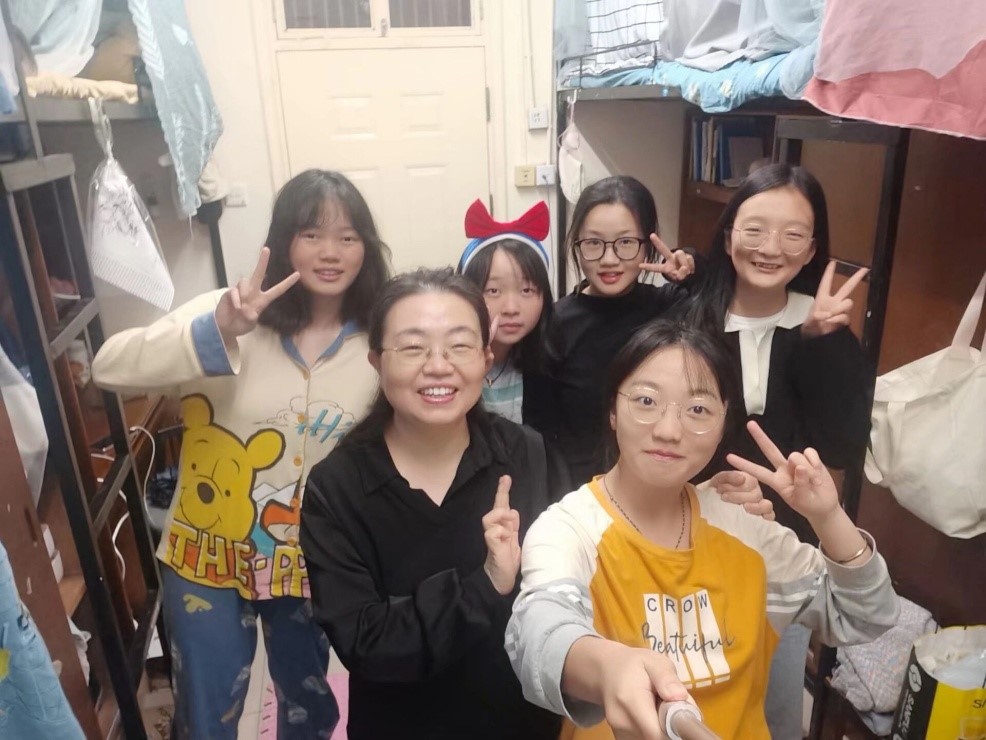 (二)走進學生,了解學生生活狀況。近期隨著武漢多日的陰雨連綿、氣溫持續走低,2021年10月14日晚上10點,2020級班主任黃傳慧老師來到學生寢室,了解學生的住宿條件和生活狀況。黃老師在班長王騰的陪同下,首先來到南區4棟男生宿舍,仔細地詢問學生的熱水、飲食狀況,叮囑學生要及時添加衣服、提醒外地的同學要適應武漢天氣。離開4棟后,黃老師在學習委員劉思怡的陪同下,來到南區19棟女生宿舍,看見女生寢室布置得很漂亮,黃老師非常高興,細心地查看學生的被子、書桌上的飲用水,和同學們拉家常,讓同學們感到格外親切,氣氛溫馨融洽。