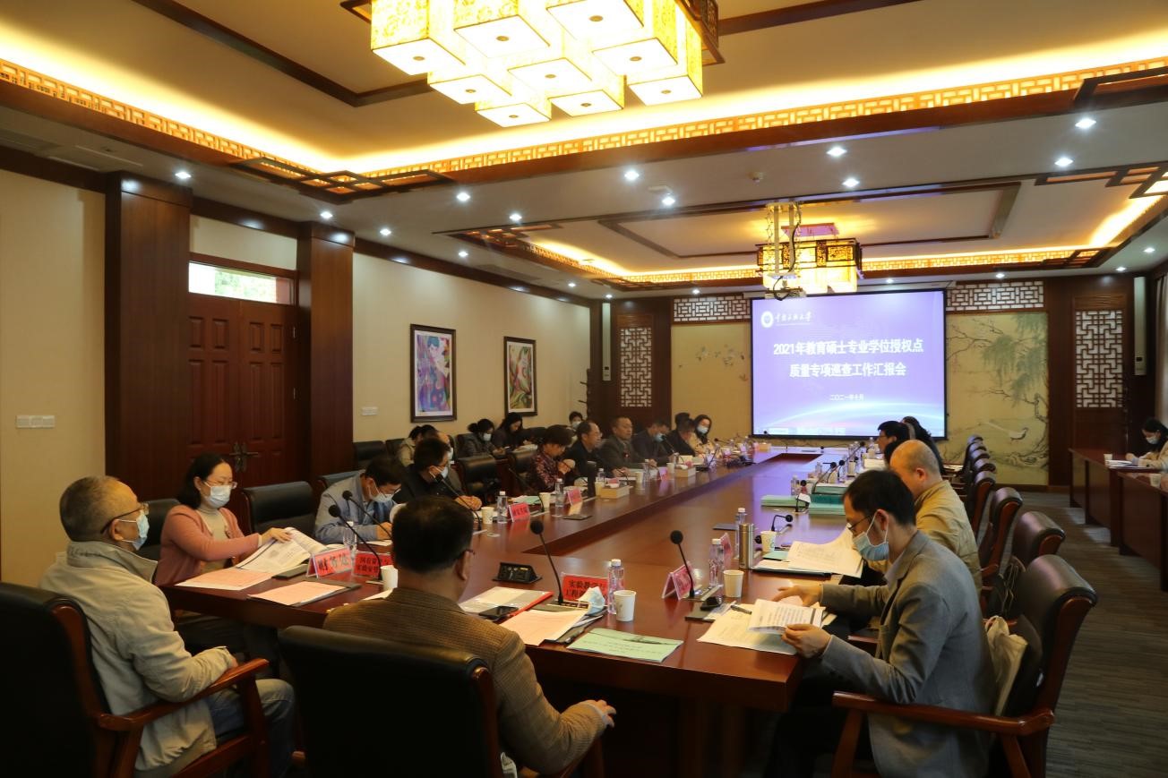 夏惠賢介紹了三位專家的相關(guān)情況,說明了此次教育碩士學(xué)位授權(quán)點質(zhì)量專項巡查的目的和要求。教育學(xué)院院長、教育碩士專業(yè)學(xué)位授權(quán)點負責人田恩舜匯報了學(xué)校教育碩士研究生實踐學(xué)工作。