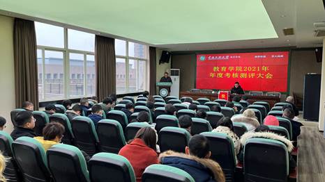 1月7日上午,教育學院在15-741會議室召開2021-2022-1學期第五次全院教職工大會暨年度考核測評大會,會議由學院黨委書記周剛主持,學院全體教職工和10位學生代表參會。