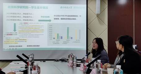 華中科技大學(xué)教育科學(xué)研究院研究生輔導(dǎo)員周駿驍對(duì)學(xué)院學(xué)生工作情況進(jìn)行了介紹。她從發(fā)展歷史、學(xué)科設(shè)置、學(xué)生基本情況、學(xué)生工作體系、學(xué)生工作內(nèi)容等方面進(jìn)行了概述,詳細(xì)介紹了教科院黨團(tuán)共建情況。