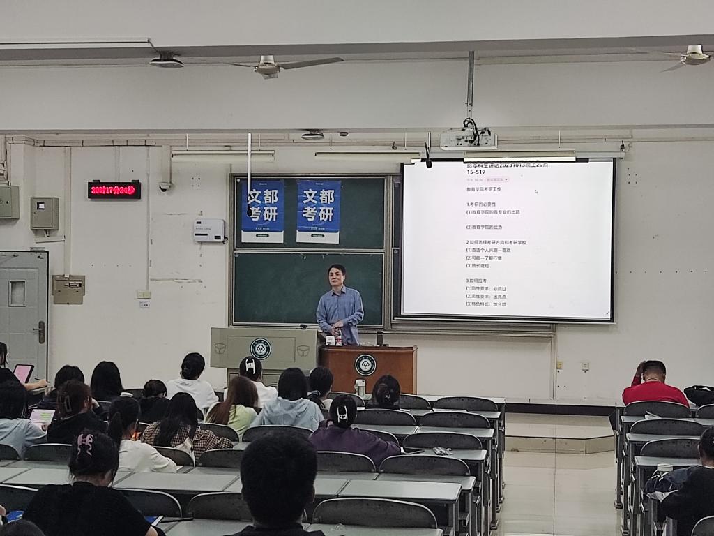 為構建精準化、全過程考研服務體系,2023年10月13日,教育學院考研專項輔導活動在15號教學樓519教室順利舉辦,活動由學院團委副書記譚閨臣主持,學院2020級、2021級本科生參加。