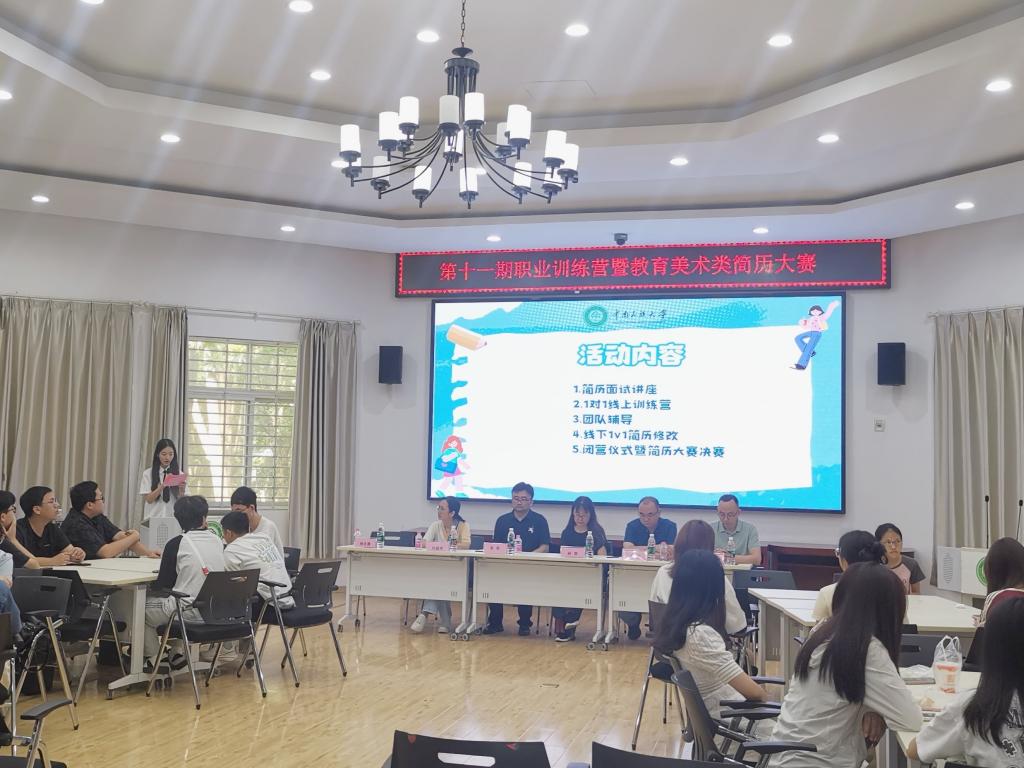 為幫助學生提升職業(yè)規(guī)劃和簡歷撰寫能力,提升就業(yè)競爭力。近期,學校舉辦第十一期職業(yè)訓練營暨教育美術類簡歷大賽,本次活動由招生就業(yè)工作處主辦,教育學院和美術學院承辦。5月25日上午在4號樓多功能廳舉辦開營儀式,學生工作部、招生就業(yè)工作處、創(chuàng)新創(chuàng)業(yè)學院、教育學院、美術學院學生工作負責人,來自各學院50名學生代表參加了開營活動。