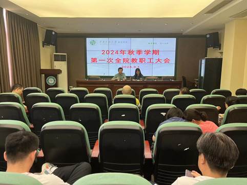 會議首先介紹了徐瑩、田雪、許紅慧、申靜潔四位新教師;傳達學習了學校秋季開學干部會議精神、學校2024年下半年工作要點;對暑期各項工作進行了總結;會議通報了畢業生就業情況;結合學校新學期工作要點,對學院新學期各項工作進行了布置。