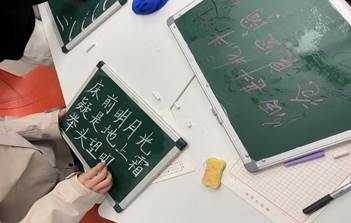 孫老師在練習環節對同學們認真的輔導,針對學生筆畫書寫問題進行逐一糾正,并詳細示范正確的寫字方法,指導大家準確的對橫豎撇捺進行練習,同學們也在老師的指導下積極參與練習,學習氛圍極其濃厚。老師和同學們互動環節氣氛熱烈,許多同學踴躍展示自己的練習成果,孫老師也認真且熱情的對每位同學書寫和練習進行示范和教導,并鼓勵他們在課后根據自身的薄弱環節加強練習。