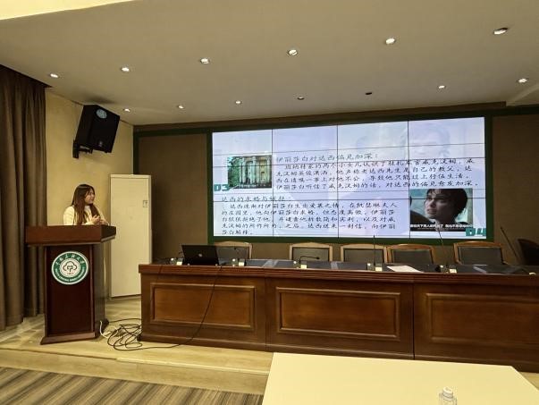 李夢同學就英國小說家簡·奧斯汀所著的《傲慢與偏見》一書開展分享。她圍繞該小說“社會風俗喜劇”與“成長小說”的文學本質,引導同學們賞析了簡·奧斯汀精湛的諷刺藝術與細膩的人物刻畫技巧。她談到,在人際交往中,我們常常會被第一印象和固有偏見所蒙蔽。唯有保持開放的心態,愿意深入了解他人,才能建立真誠的關系。