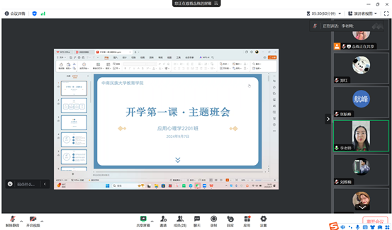 (圖為心理教育2201班班導(dǎo)師李晨召開線上班會(huì))