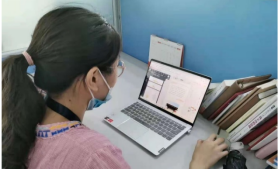 7月5日,另外四位同學也陸續入職實習。李浩萍和胡玥兩位同學負責慶祝《百年百人,誓言有聲》百集音頻海報的文字稿件工作。田茜和汪田田主要負責虛擬主播的新聞稿件編寫。