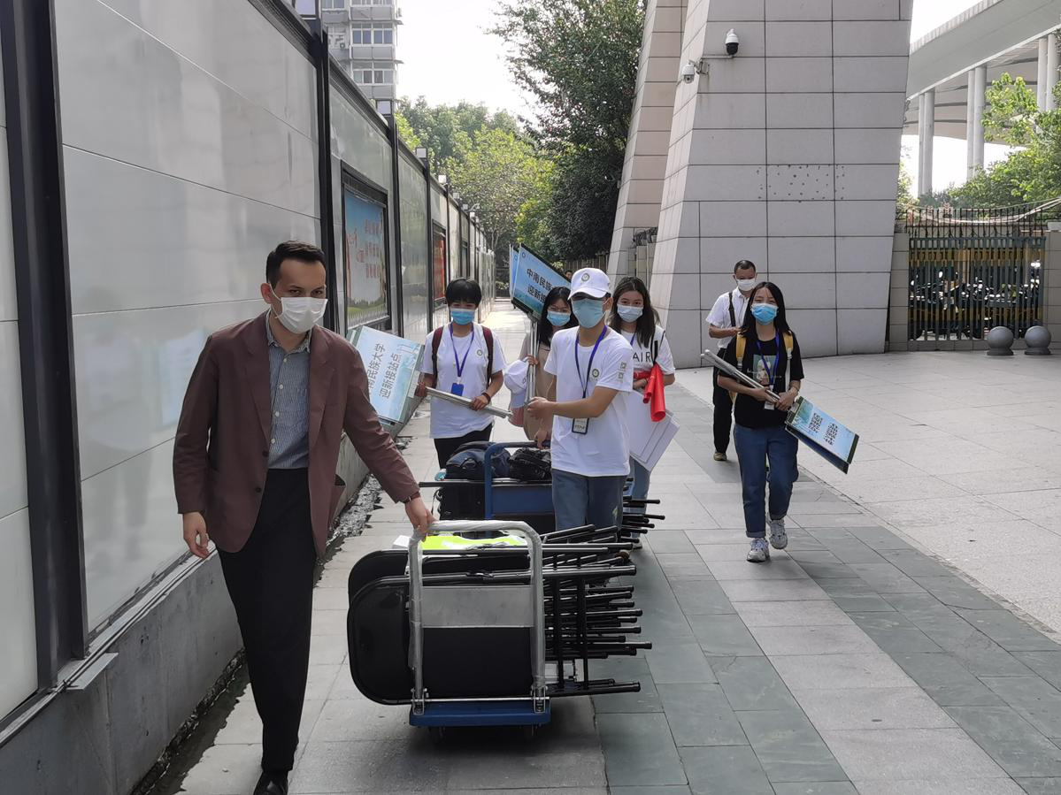 一張張熱情的笑臉、一句句貼心的問候以及志愿者們周到的服務,消除了新生們初來乍到的陌生感,溫暖著來自全國各地的莘莘學子。許多家長表示一開始擔心孩子適應不了南方的生活,但是志愿者們熱情的服務打消了他們的顧慮,并且對孩子以后的大學學習生活充滿期待。家長與新生的放心來自迎新志愿者們的辛勤工作,我院志愿者負責人表示:“在19日這一天志愿者們就接待了約440位新生和家長,平均每位志愿者的行走步數都在兩萬以上,部分同學甚至突破三萬,接近四萬?!?/span>