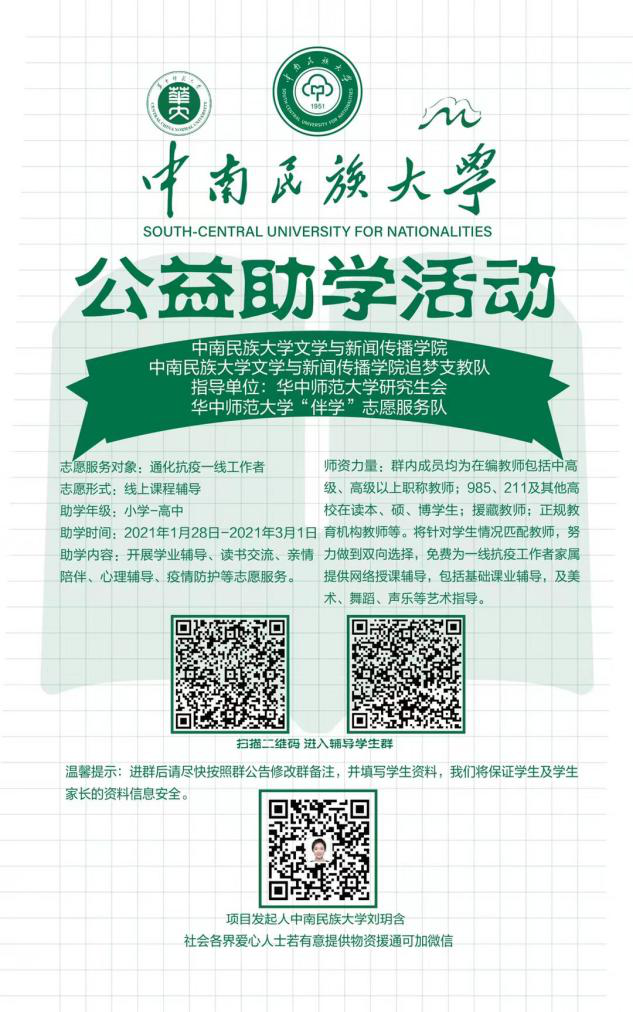在這一場一呼而百應的援通活動中,緊緊相依的同胞之心溫暖了大雪紛飛的通化。如同劉玥含一樣,個人的艱苦奮斗鑄就了感人的抗疫精神。疫情面前方顯勇毅,磨礪始得玉成。千磨萬擊還堅勁,越是艱險越向前。當問起劉玥含下一步的計劃時,她有力地說:“我希望做到以咱們中南民族大學為起點,集結更多湖北高校乃至全國高校同學的力量,援助通化和全國疫情地區。”