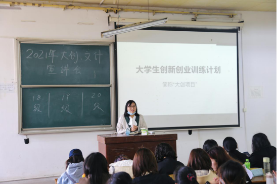 分享會伊始,我院新任輔導員樊曉陽首先為大家詳細介紹了2021年“大創”項目和“文計”大賽的具體情況,并強調了兩個比賽的重要性。她指出,正逢“十四五”開局之年、高校教育深化改革之際,國家和學校都在持續推進廣大本科生創新創業扶持制度。本科生在大學四年中也要充分利用國家和學校提供的資源支持,積極參加大賽既可以不斷提升自己的核心競爭力,又可以為學校的榮譽增磚添瓦。