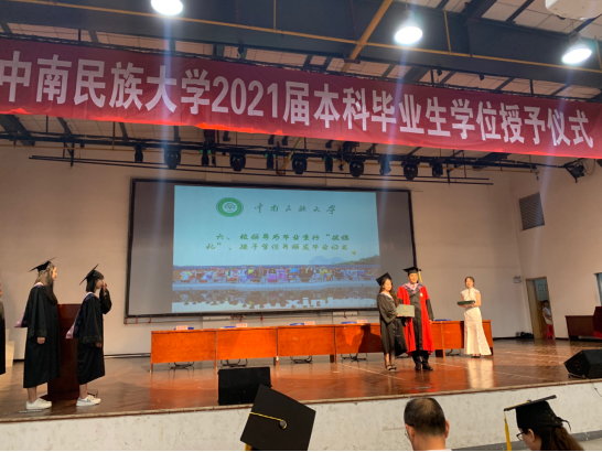 本站訊(通訊員祝雅屏)又至一年驕陽似火的仲夏,南湖畔熏風習習,清荷吐綠,楊柳依依,碧水漣漣。6月18日下午3點,我院舉行2021屆本科畢業(yè)生學位授予儀式,師生齊聚大學生活動中心。 典禮由我院黨委書記韓昕主持,院長陶喜紅、黨委副書記張文軍、副院長陳峻俊、副院長謝榮娥、副院長陳嘯共同出席典禮與畢業(yè)生們分享畢業(yè)的喜悅。