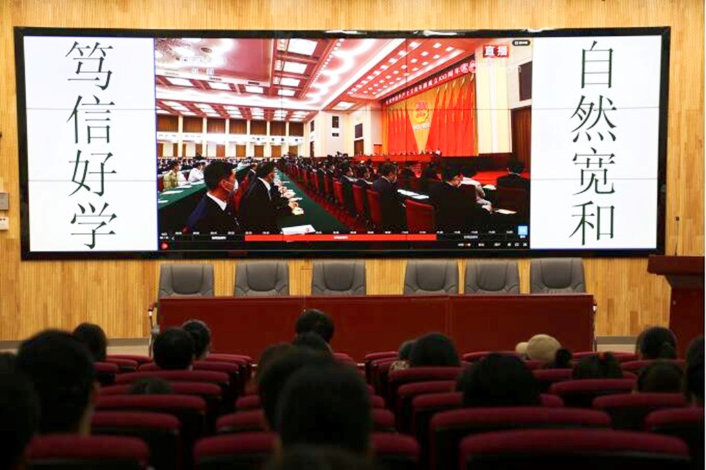 本站訊(通訊員田珊 攝影唐詩)5月10日上午,慶祝中國共產主義青年團成立100周年大會在北京人民大會堂隆重舉行。上午10時,我院于文一樓101教室召開師生專題學習會,學院師生代表共同收看大會直播并認真學習聆聽習近平總書記的重要講話。