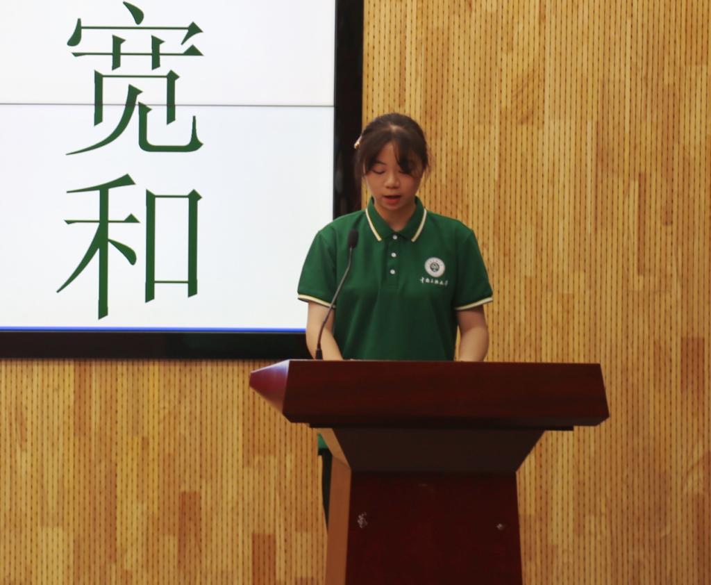 本科新生代表王培柳表達了成功錄取我校的喜悅和對大學生活的憧憬,她表示在今后的學習生活中將明確學業規劃,嚴于律己,腳踏實地,不斷充實自身,成為一名有理想、有道德、有文化、有紀律的全面發展的文傳人。