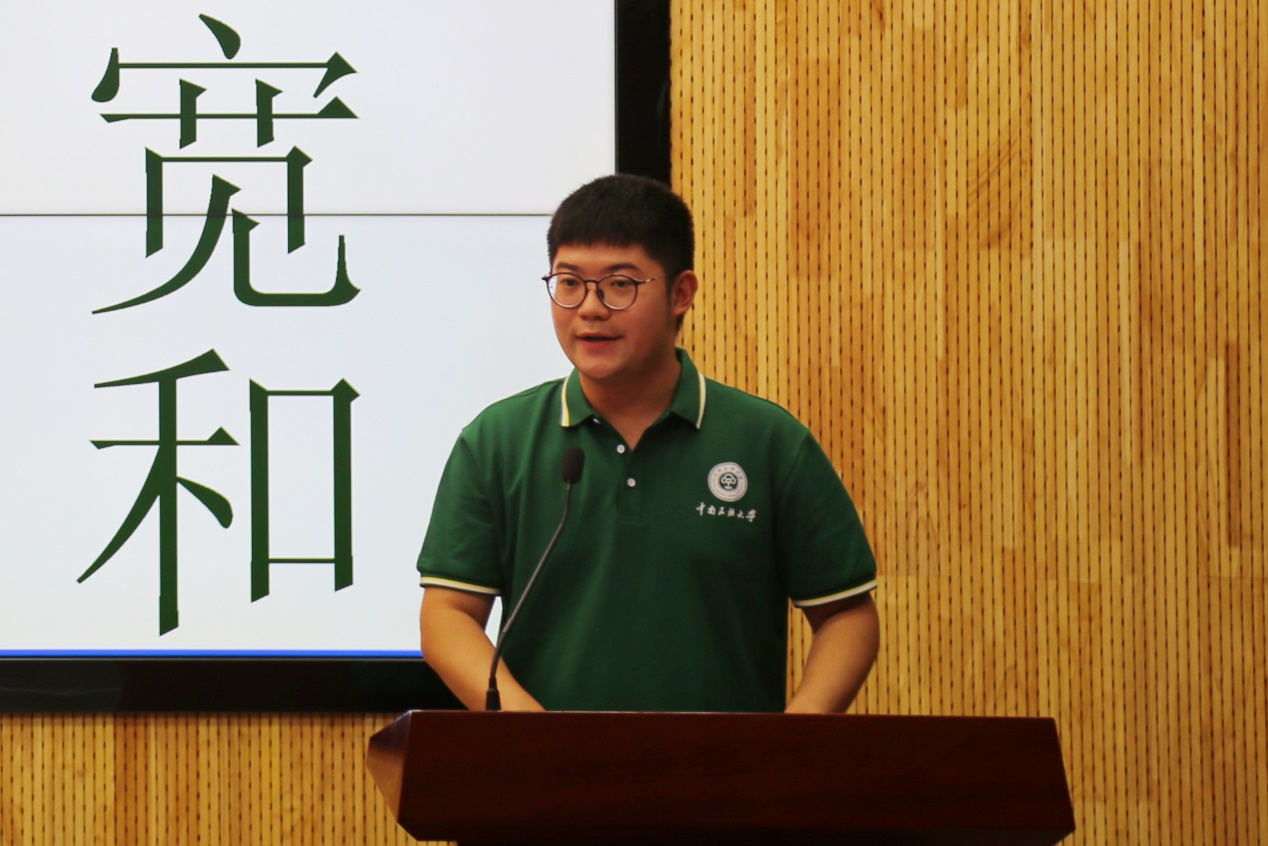 研究生新生代表付成棟從“文傳人”、“民大人”、“青年人”三個角度出發,分享自己四年大學生活的經歷和思考,與新生共勉。他認為新時代大學生不僅要學會做事、做人,還要勇于承擔社會責任,提升綜合素質,實現自我價值。