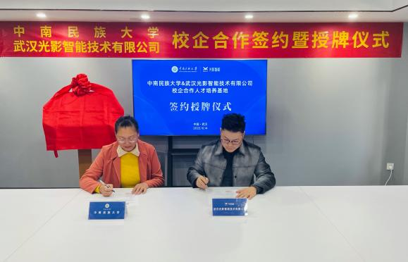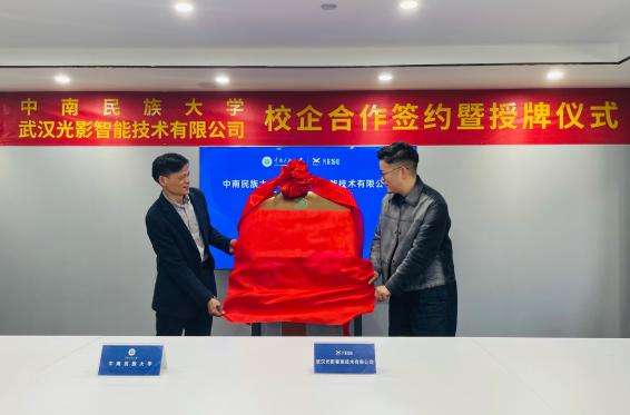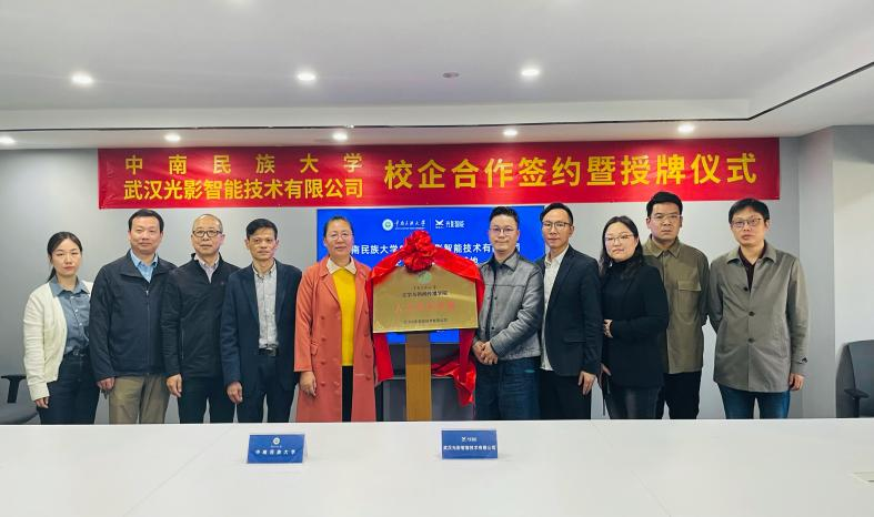 本站訊(通訊員 邵婉霞)10月14日上午,中南民族大學文學與新聞傳播學院張文軍副書記帶領廣告學教研室徐紅老師、祝翔老師、鮑建強老師、邵婉霞老師前往武漢光影智能技術有限公司考察交流,開展訪企拓崗活動,并舉行校企合作人才培養基地的簽約授牌儀式。