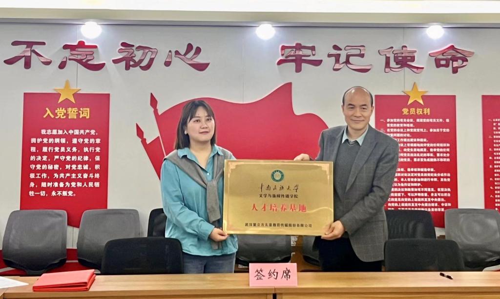 陶喜紅院長與愛立方副總經理金錦秀簽署合作協議,并為愛立方出版教育產業(yè)園授牌“中南民族大學文學與新聞傳播學院人才培養(yǎng)基地”。簽約授牌儀式結束后,雙方開展座談交流。