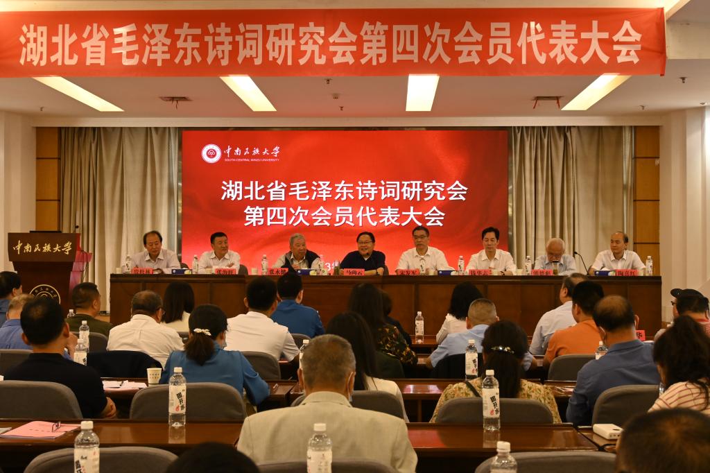 在第一項議程中,我校黨委常委、副書記、副校長宋發軍指出,毛澤東詩詞內涵深厚,影響深遠,是史詩合一、史哲合一的革命文學形態,是歷久彌新、宏大高遠的精神食糧,是時代傳承的紅色文學精品,也是植入中國人精神面貌品質的文化基因,是新中國文化、美術、音樂等文化藝術創作鑒賞的取材元素。中南民族大學是研究毛澤東詩詞的重鎮,老一輩學人何聯華、劉海清、王海濤等人在研究方面取得了很大成就,何聯華教授為江蘇電視臺拍攝的專題片《指點江山——毛澤東詩詞故事》全集撰稿,出版了《毛澤東詩詞研究史》著作;中年學者劉為欽、楊彬、羅義華、彭衛紅等人也在毛澤東詩詞研究方面取得不菲的成就;青年教師雷登輝、黨永輝、蔡東也在毛澤東詩詞研究領域嶄露頭角。作為湖北省毛澤東詩詞研究會的法人單位,我校將全力做好服務保障工作,共同推動湖北省毛澤東詩詞研究會向更深、更遠的方向前行。