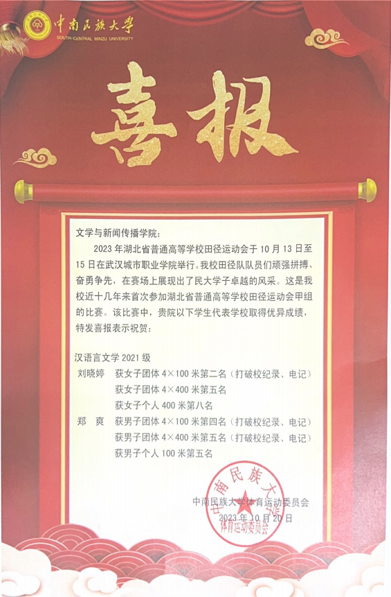 我院學(xué)子在湖北省普通高等學(xué)校田徑運(yùn)動(dòng)會(huì)中取得優(yōu)異成績(jī) |