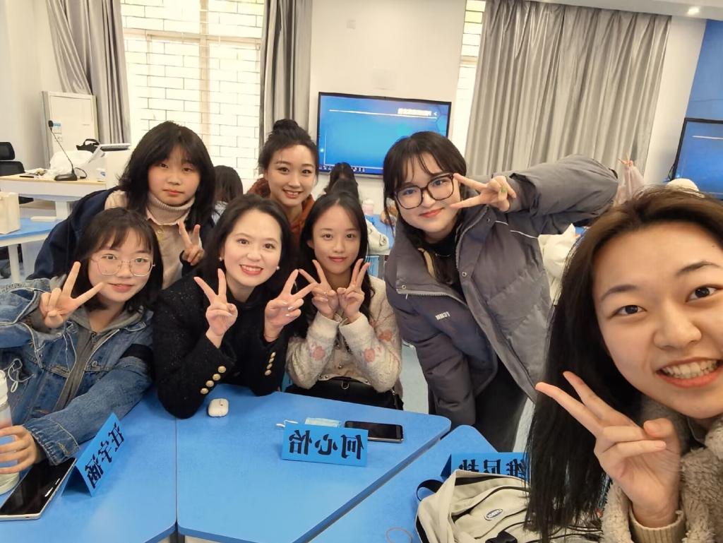 在生活中,田老師更是學(xué)生的“知心姐姐”。了解學(xué)生所思所想,關(guān)注學(xué)生心理變化,她的步伐從未停過。“大家在學(xué)習(xí)和生活中有需要幫助的地方都可以來找我溝通,我一定盡力相助。”田老師是這么說的也是這么做的。在從教的8年間,她多次指導(dǎo)學(xué)生參與競賽,獎項頗豐;多次幫助學(xué)生解決生活中、思想上的各種困惑,被學(xué)生親切地稱呼為“園子姐姐”。今年,田老師擔(dān)任新聞類2302班的班導(dǎo)師,考慮到新生遠離家鄉(xiāng),可能會出現(xiàn)低落和焦慮情緒,在開學(xué)的第一次見面會上,田老師為每一位同學(xué)都準(zhǔn)備了飲料,并且親切地和各位同學(xué)交流。在心理安全教育班會上,田老師又以自己的經(jīng)歷為例,分享自己的經(jīng)驗并親切囑咐同學(xué)們要注意身體健康,多鍛煉、少熬夜。