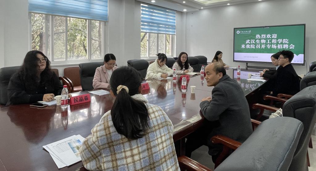 陶喜紅院長對招聘單位的到來表示歡迎,并詳細介紹了我校及學院的辦學理念、育人目標和研究生綜合素質培養計劃。武漢生物工程學院文學院黨總支書記、常務副院長黃亞蘭介紹了該校的建校歷史、校園文化和教學優勢。武漢生物工程學院已連續三年為我院學生提供優質崗位,在招聘會中已有多名學生達成就業意向并投遞簡歷。
