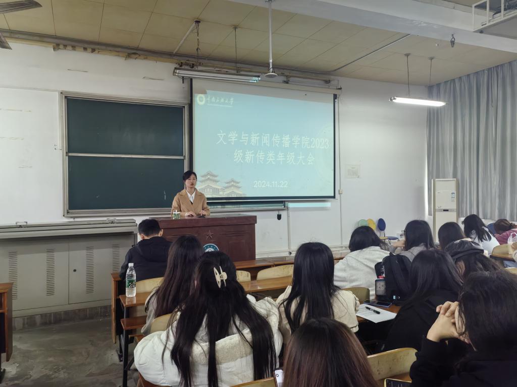 本站訊(通訊員劉卓爾 攝影李啟蓉)2024年11月22日,文學(xué)與新聞傳播學(xué)院2023級(jí)新聞傳播學(xué)類本科生年級(jí)大會(huì)在文一樓201教室召開。本次會(huì)議由輔導(dǎo)員韓婷老師和高志祥老師共同主持。