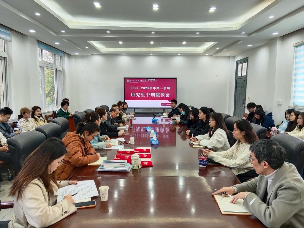 本站訊(通訊員:王喜樾 攝影:王喜樾)12月6日上午,學院在文一樓203會議室舉行2024-2025學年第一學期研究生期中座談會。會議由熊英副院長主持,學院黨委書記謝嵐、院長陶喜紅、輔導員王芳老師、田曼陽老師以及碩博學生干部、研究生會干部、部分研究生代表出席。