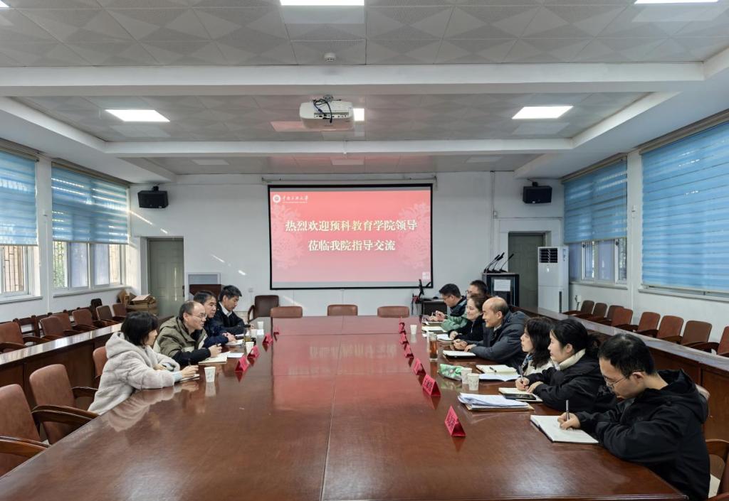 副書記牛磊對學院預科內升同學的學業方面基本及日常生活情況進行了介紹。隨后,雙方就預科教育教學、本科教育教學的多個議題展開了深入細致的交流和經驗分享。與會人員充分交流了各自在預科教育教學實踐中的經驗和思考。通過座談交流,進一步加深了兩院之間的了解,雙方都從中獲得了寶貴的經驗和啟示。