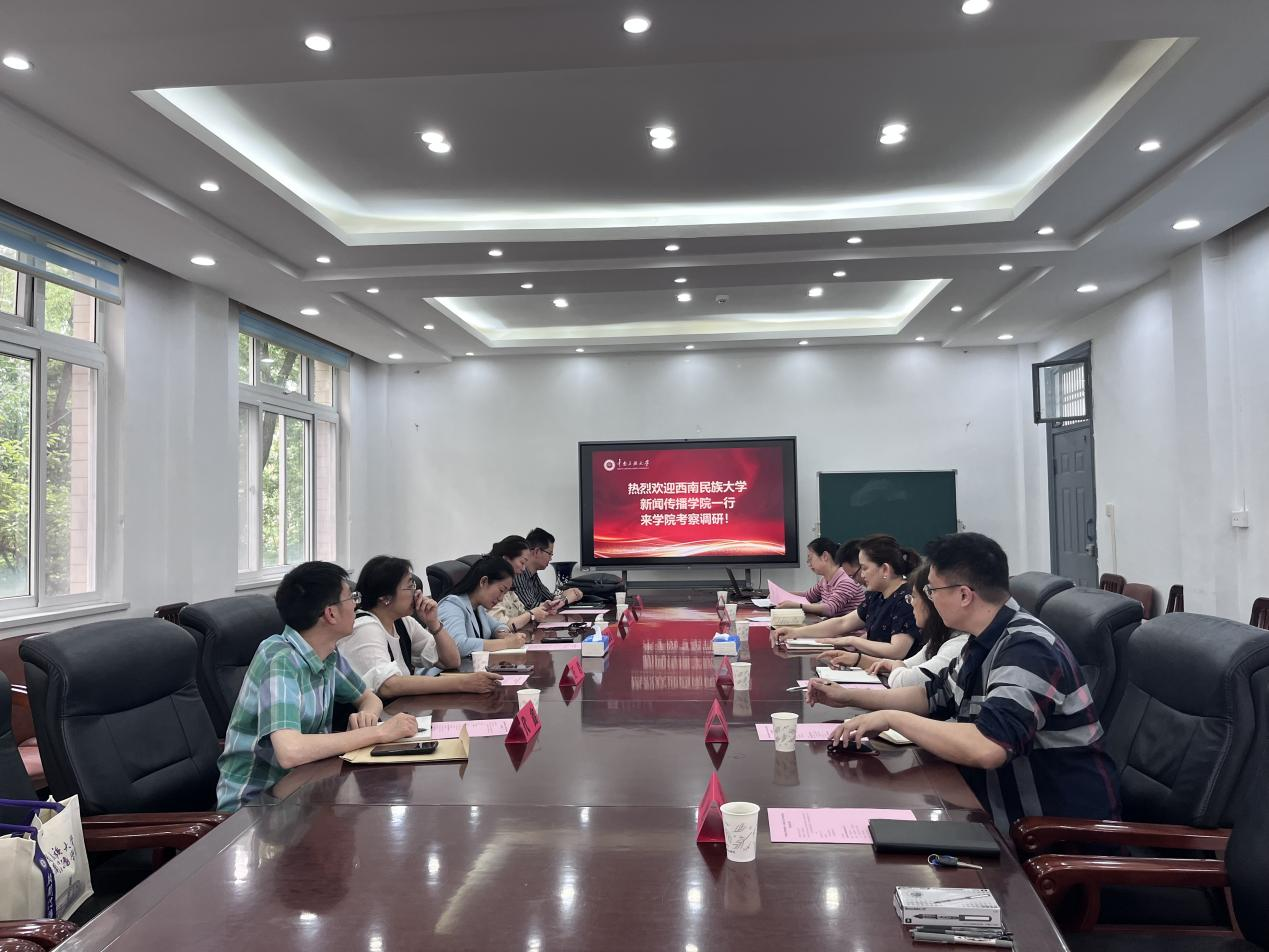 (通訊員 王澤光 張巍巍)4月17日,西南民族大學新聞傳播學院黨委書記陳茹心、黨委副書記李亞星一行蒞臨我院進行調研,我院黨委書記謝嵐、黨委副書記牛磊及雙方學院教師代表、輔導員代表參加座談會,雙方圍繞黨建工作、專業教學、學生思政教育和日常管理、校園文化建設、大學生心理健康教育等內容進行座談。
