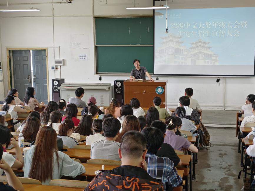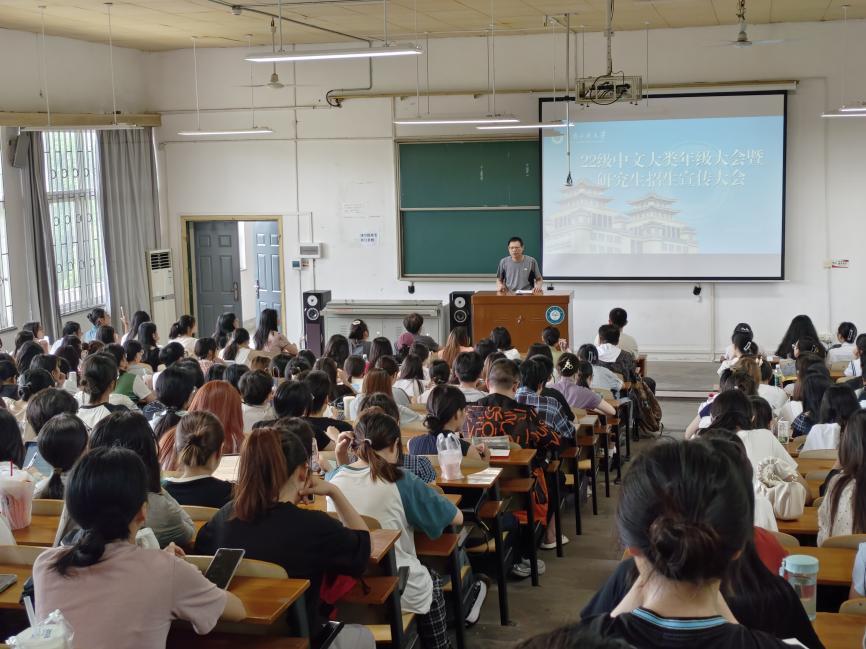 6月12日,中南民族大學文學與新聞傳播學院2026年研究生培養體驗計劃之導師宣講暨22級中文年級大會在文一樓301教室舉行。會議聚焦研究生招生校內宣傳與升學指導,特邀中文系系主任李長中、語言文化教育系教師夏耕與學生面對面交流,由22級中文大類輔導員王冰瀅老師主持。